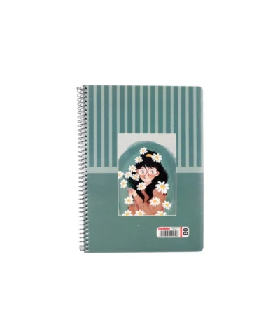 دفتر 80 برگ فنری اسپادانا طرح دختر با گل های سفید